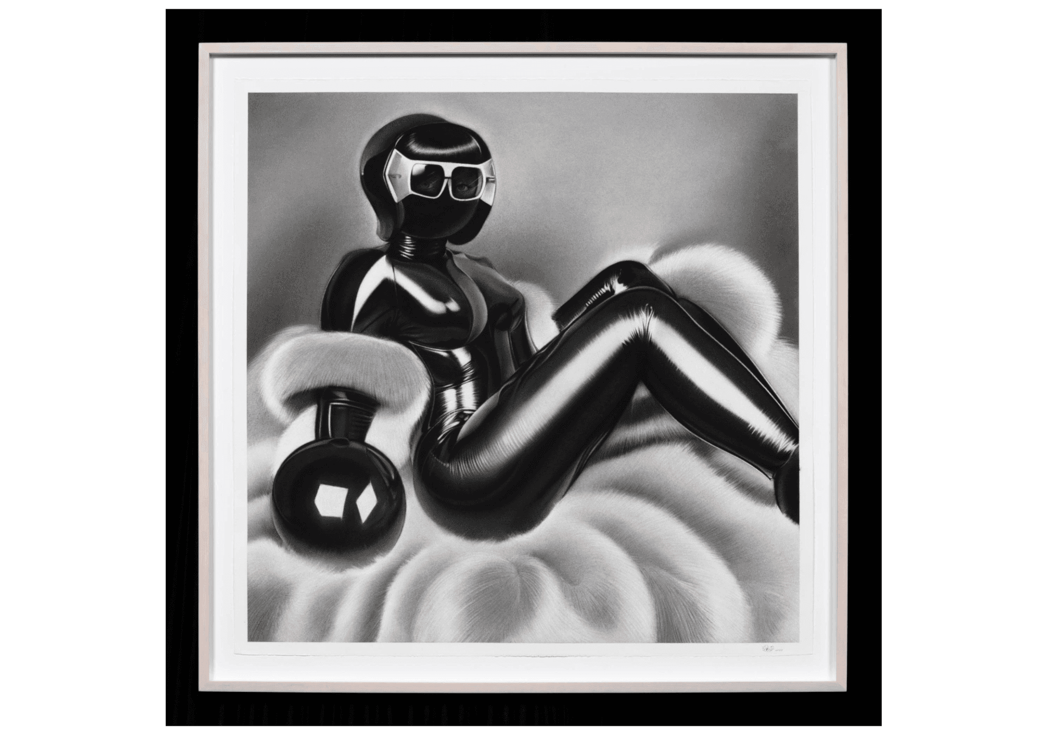 Velvet Other World, Bimbot, 2023. Charcoal on BFK. 42.5″ x 42.5″. Photo courtesy of the artists and Kapp Kapp.