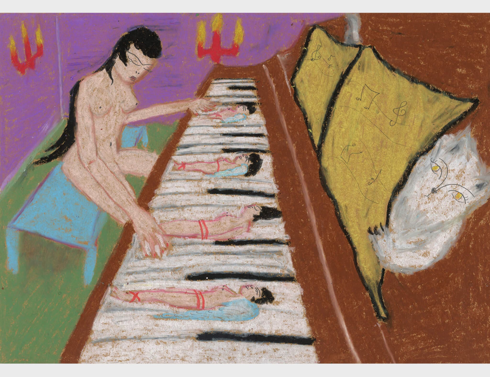 Affsoongar, Eeny Meeny Miny Moe, 2025. Oil pastel on paper. 11 ⅞ x 16 ¼ inches. Courtesy of Pulp.