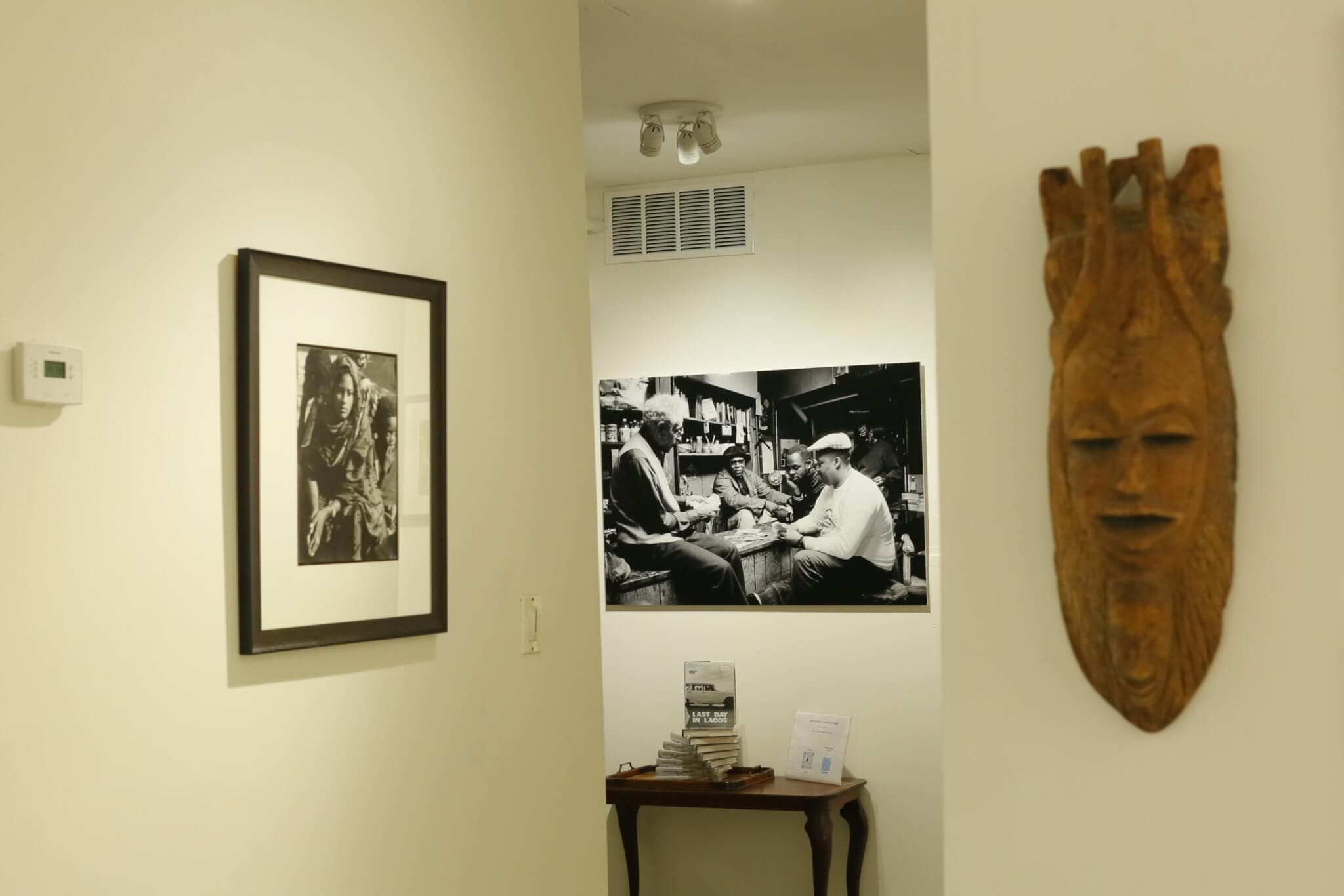 “You’re my angel,” sang Lalah Hathaway as I walked down the steps into Beacon Gallery in Boston’s South End to visit “Cheryl Miller: If We Stand Tall.” It felt familiar; it simply felt right to have incense burning and be surrounded by art and family photographs. I entered the gallery during one of three Studio Sundays held throughout the month of August, which welcomed the public into the space of Miller’s artist residency. Inside, large unframed prints hung on one side of the elongated gallery. On the other, framed photographs of different sizes hung above a desk and small table that displayed family portraits, books, vintage cameras, a bowl of dried flowers, memorabilia, and other curios.