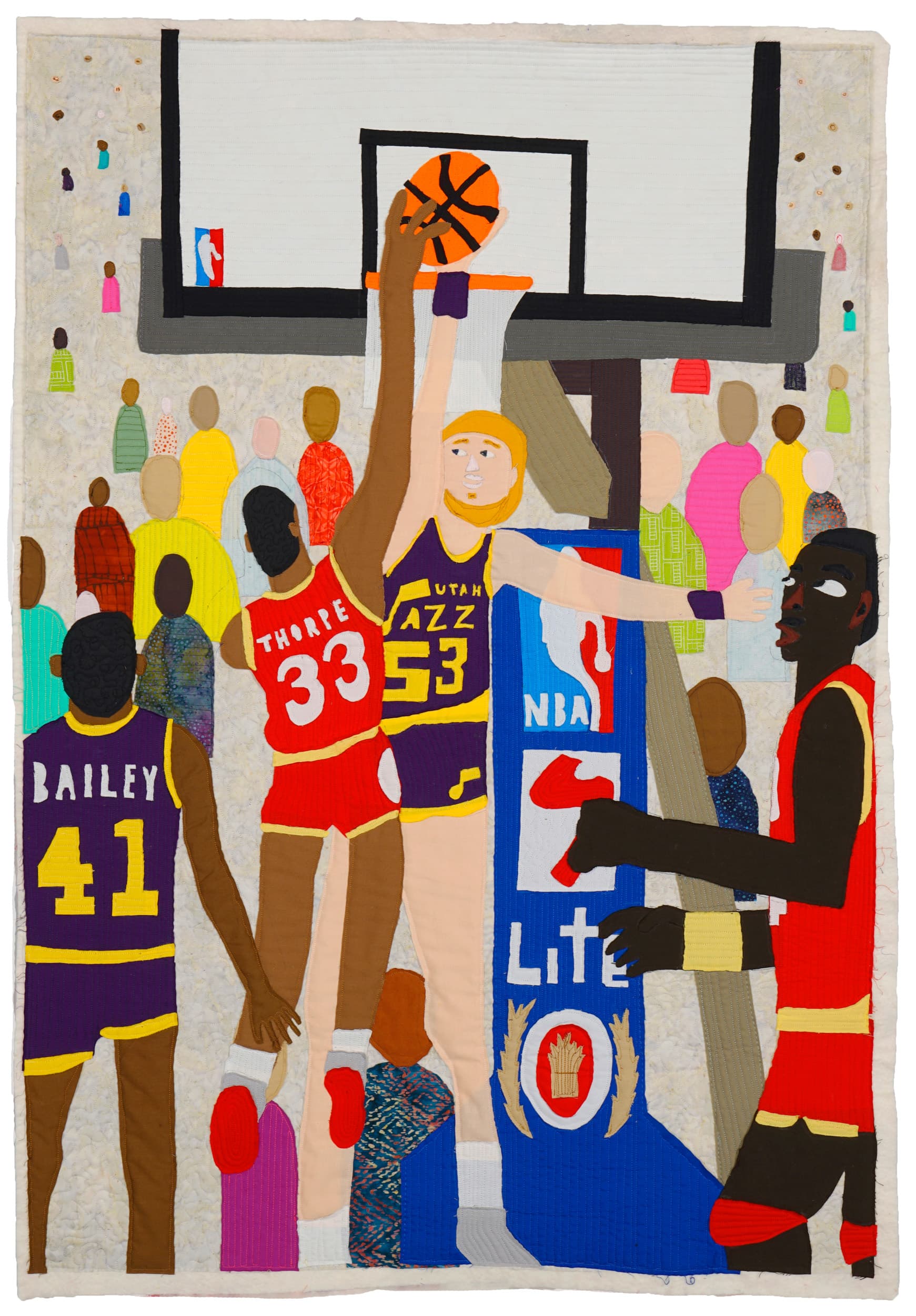 Michael C. Thorpe, Hoop Dreams, 2021. Fabric, quilting cotton and thread. 46.5 x 32.5 in (118.1 x 82.6 cm). Image courtesy of LaiSun Keane.