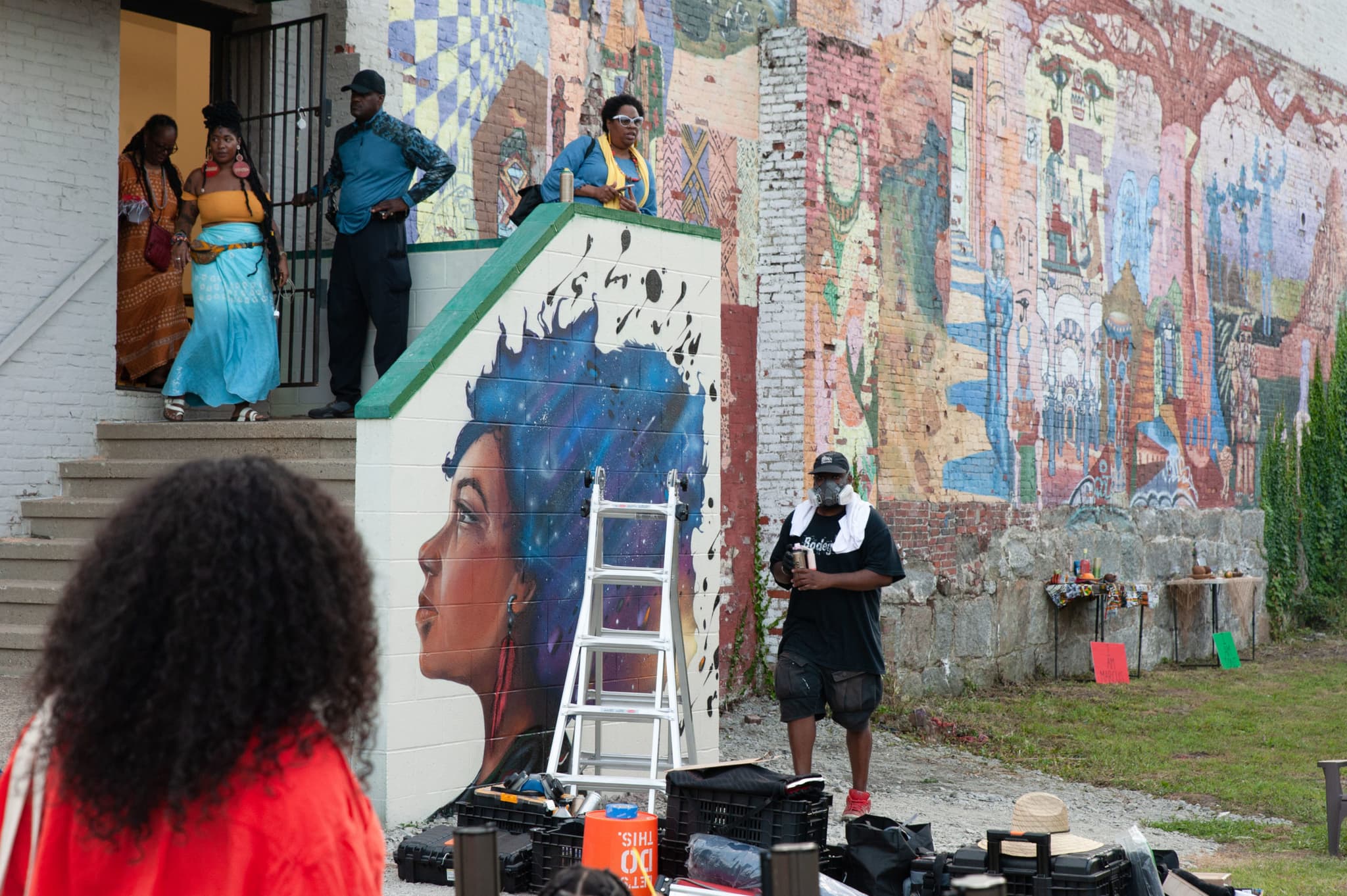 Rob “ProBlak” Gibbs working on a mural during the Afro-Indigenous Arts + Healing Festival at Black Market, August 2019. Image courtesy of Black Market.