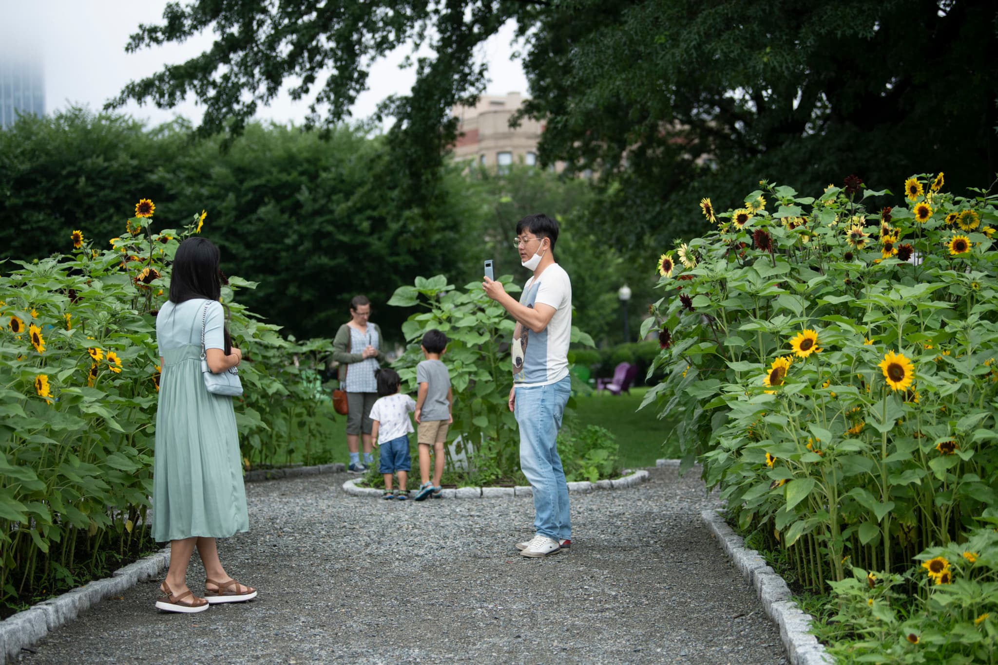 By July, visitors to Radiant Community could experience thousands of sunflowers beginning to tower overhead. Holmes’s installation at the Museum of Fine Arts became an extension of her annual sunflower planting around Roxbury. Photo by Tony Rinaldo Photography © Museum of Fine Arts, Boston.