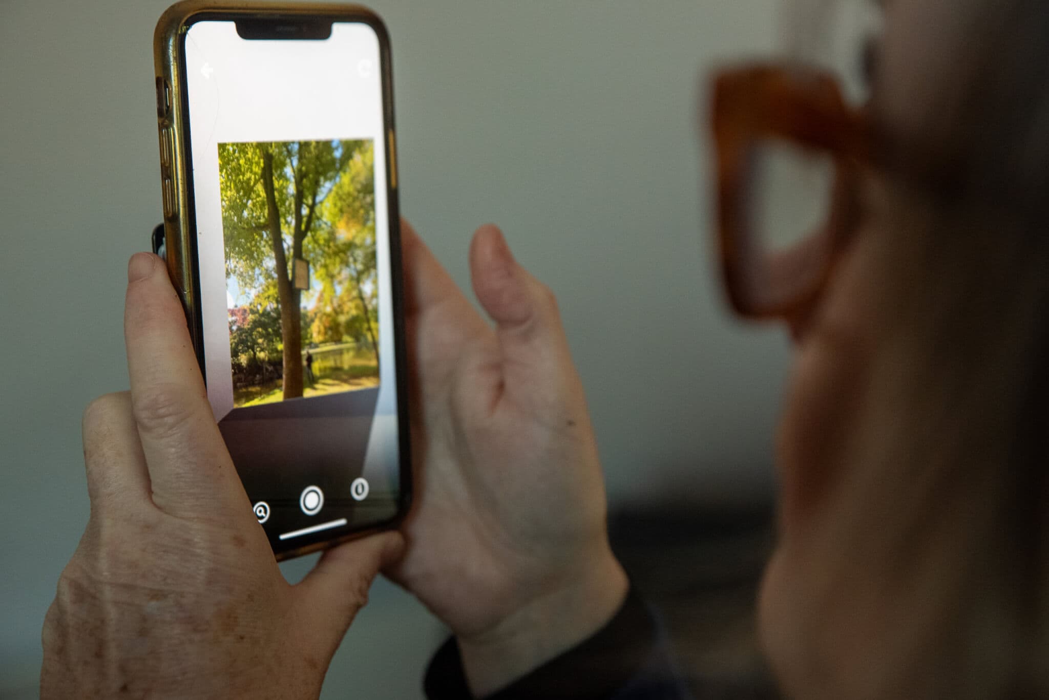Farrington demonstrates the Hoverlay component of “Future Monument to the Trees of the Public Garden.” Photo by Lita Xú Líng Kelley.