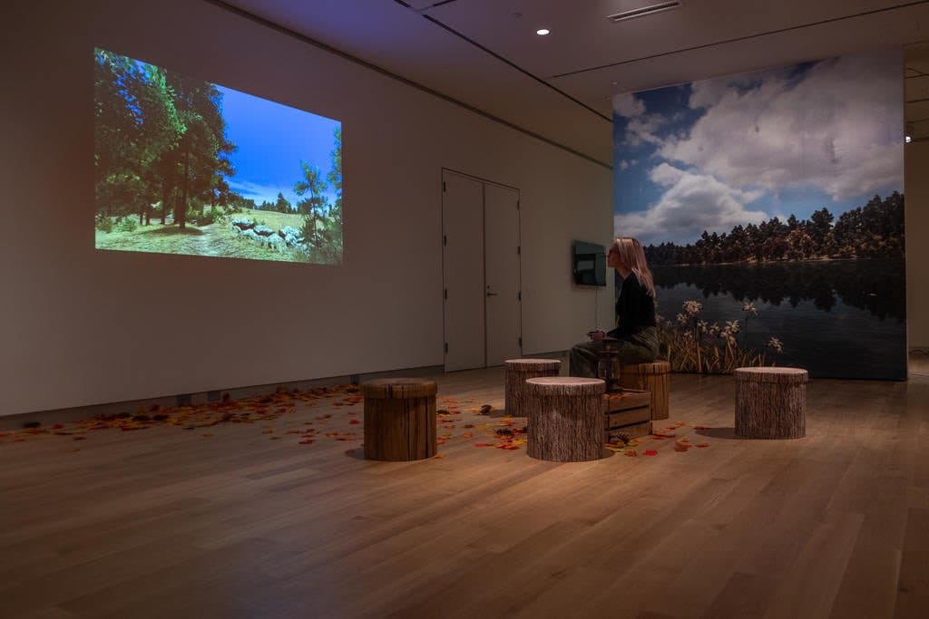 Tracy Fullerton, Walden, a Game, installation view as part of “Game  Changers,” MassArt Art Museum, 2020. Photo by Daniel Berube ‘21. Courtesy of MassArt.
