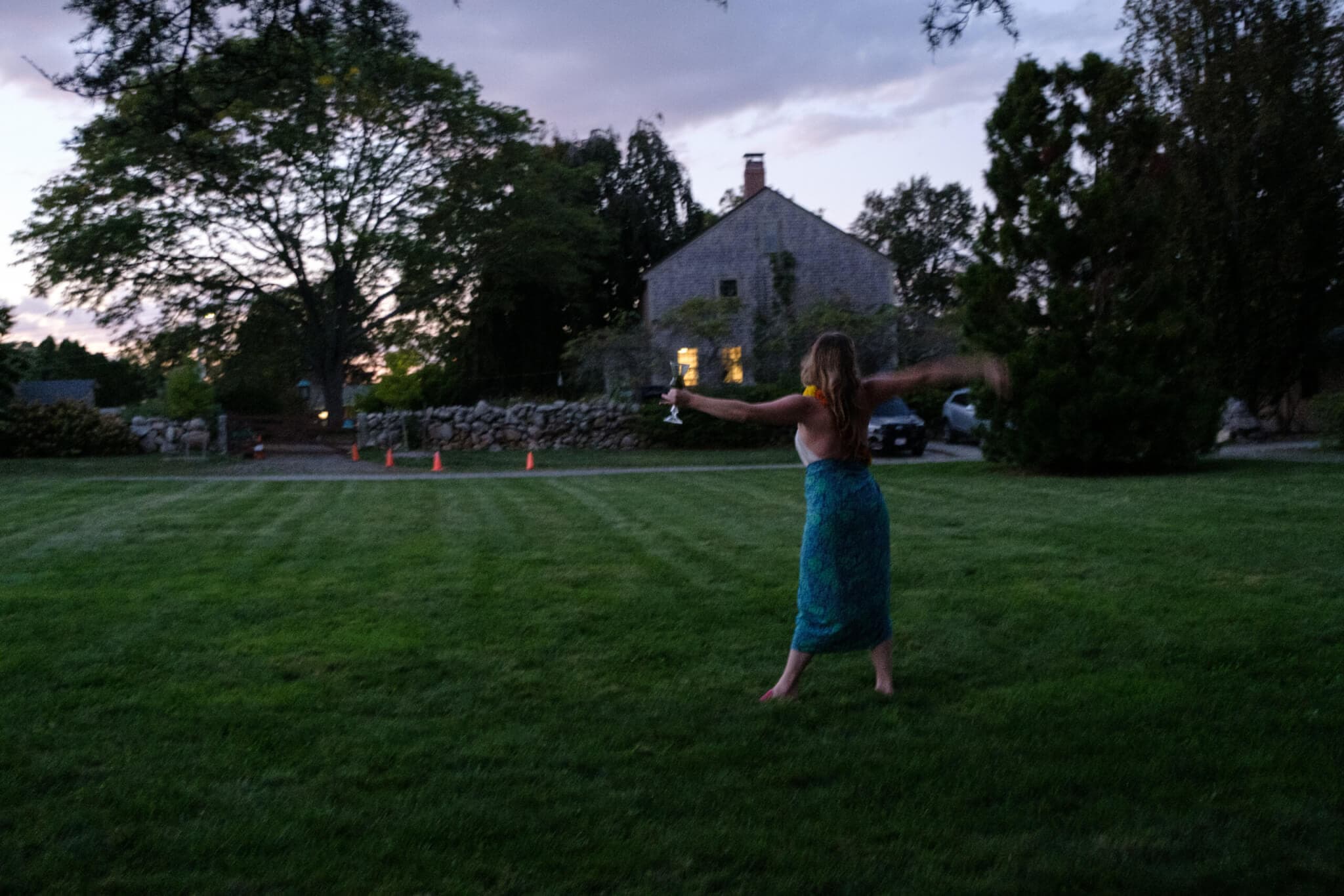 One huge highlight from that night was during Willa’s performance. She was leading everyone in a procession through the field. She started out in the greenhouses, ringing a bell and singing and doing a movement piece out to this really gorgeous hop house—we call it the hop house because there’s a lot of hops growing on it. It’s sort of made of branches, a little house that is covered in gorgeous plants, and you can go inside. And so while she was walking up to the field, it was getting quite dark—and bats were swooping everywhere! And then when she was in that little hop house, she created this elixir that was made with all the herbs and plants from the land and served it to us ceremoniously. So that was really magical.
